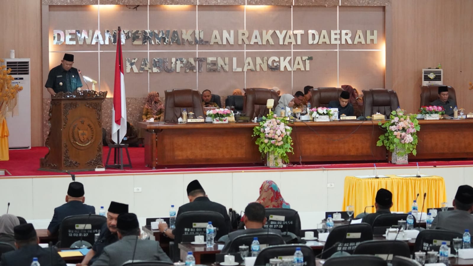 Pelaksana Tugas (Plt) Bupati langkat H Syah Afandin SH sampaikan penjelasan Ranperda tentang pertanggungjawaban pelaksanaan APBD Kabupaten Langkat Tahun Anggaran (TA) 2021 pada rapat paripurna DPRD Langkat, Senin (11/7/2022).