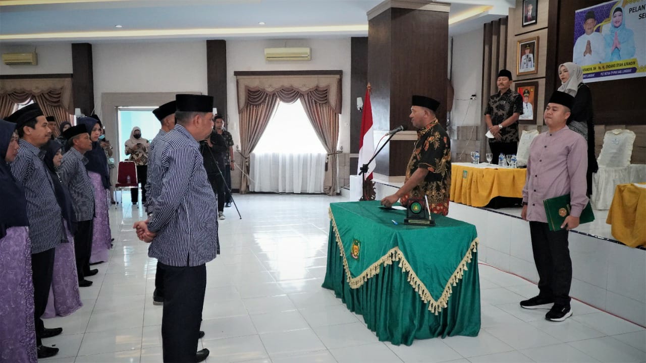 Pelaksana Tugas (Plt) Bupati Langkat H Syah Afandin SH melantik Dewan Hakim MTQ ke- 55 Kabupaten Langkat Tahun 2022, di Ruang Pola Kantor Bupati Langkat, Kamis (15/9/2022).