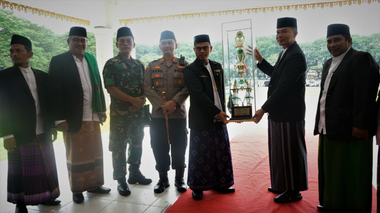 Giat dilanjutkan pemberian piala kepada pemenang lomba peringatan hari santri 2022 yang memperebutkan piala Plt Bupati Langkat H Syah Afandin SH oleh Sekdakab Langkat kepada Pondok Pesantren Muhammadiyah Kuala Madu sebagai juara umum.