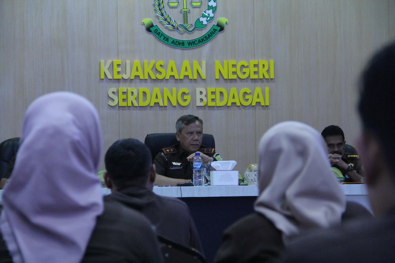 Kunjungan kerja (Kunker) ke Kejaksaan Negeri Serdang Bedagai, Kajati Sumut Idianto, SH, MH didampingi Asbin Sufari, SH, MH, Kabag TU Rahmad Isnaini, SH, MH dan Kasi Penkum Yos A Tarigan, SH, MH ajak seluruh jajaran dukung program Rencana Aksi Nasional dan Pemulihan Ekonomi Nasional.