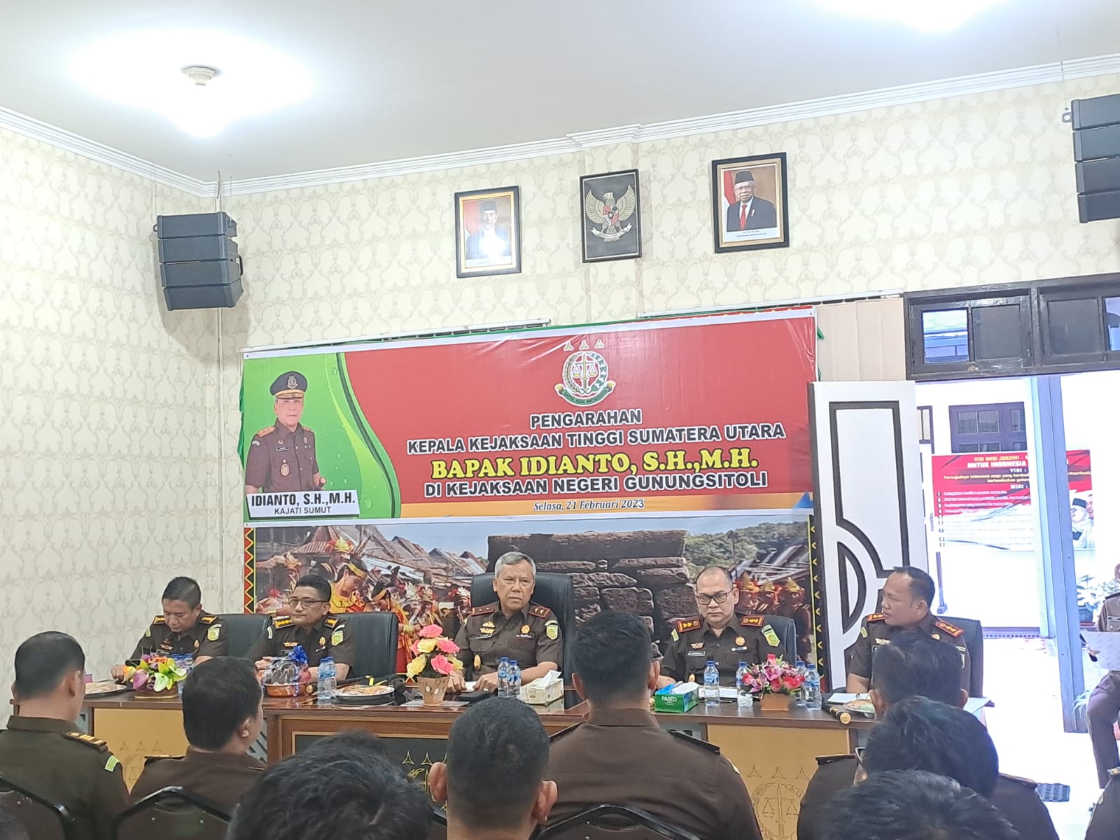 Agenda kunjungan kerja Kajati Sumut dirangkai dengan peninjauan kantor Kejari Gunungsitoli dan menyapa seluruh Kasi dan jajaran. Selanjutnya, Idianto memimpin acara rapat dan pengarahan di Aula Kejari Gunungsitoli.