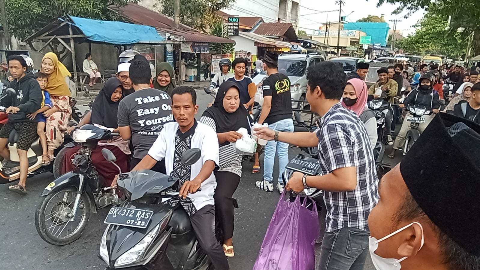 “Takjil kami bagikan kepada setiap pengendara yang melintasi dan warga setempat," kata Putra Perangin angin selaku koordinator CDI