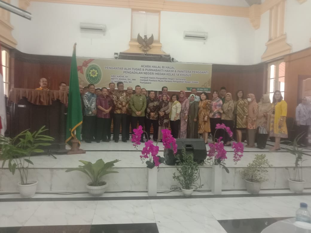 Pengadilan Negeri Medan menggelar acara Halal Bi Halal bersama seluruh hakim dan pegawai di Aula pengadilan sekira pukul 09.00 WIB. Selain itu juga dilaksanakan acara Penghantar Alih Tugas dan Purnabakti kepada hakim Abdul Kadir SH menjadi Hakim Pengadilan Negeri Semarang. Netty Riama SH.MH menjadi Panitera Muda Perdata Pengadilan Negeri Stabat. Sedangkan Hj. Martalina SH Purnabakti, Jumat (5/5/23 ).