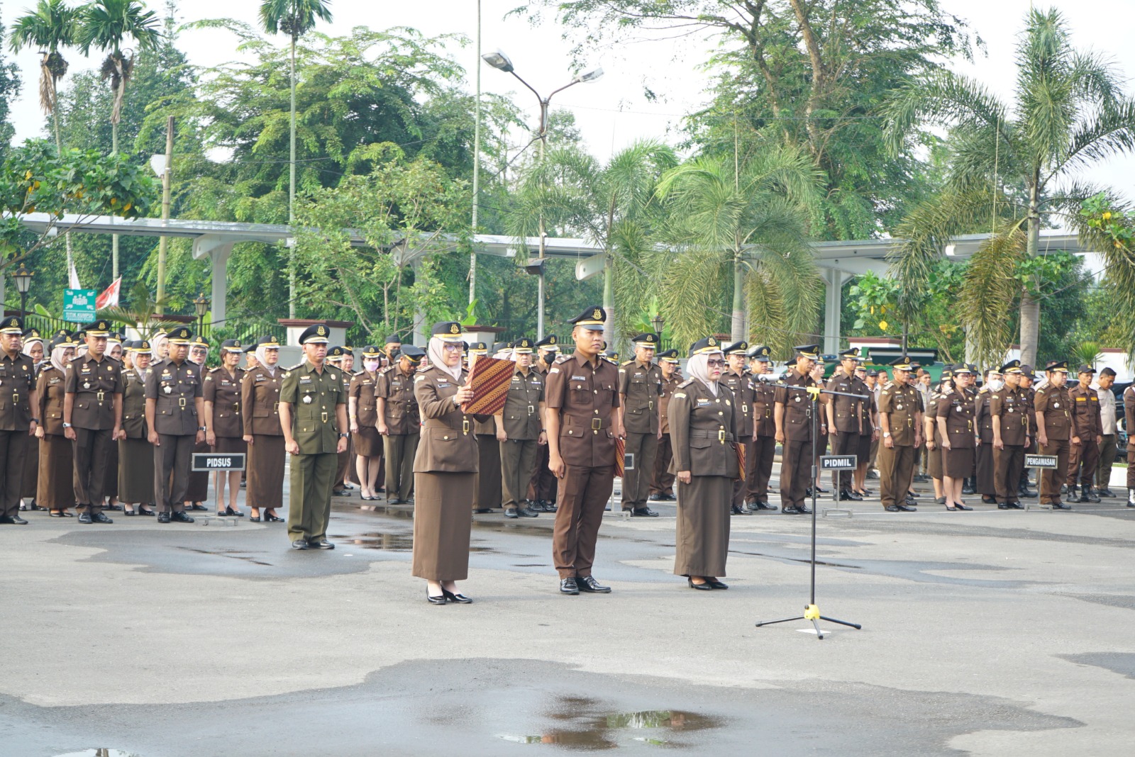 Kepala Kejaksaan Tinggi Sumatera Utara Idianto, SH,MH memimpin apel pagi sekaligus upacara peringatan Hari Kesaktian Pancasila yang diperingati setiap tanggal 1 Oktober di halaman kantor Kejati Sumut Jalan AH Nasution Medan, Senin (2/10/23).