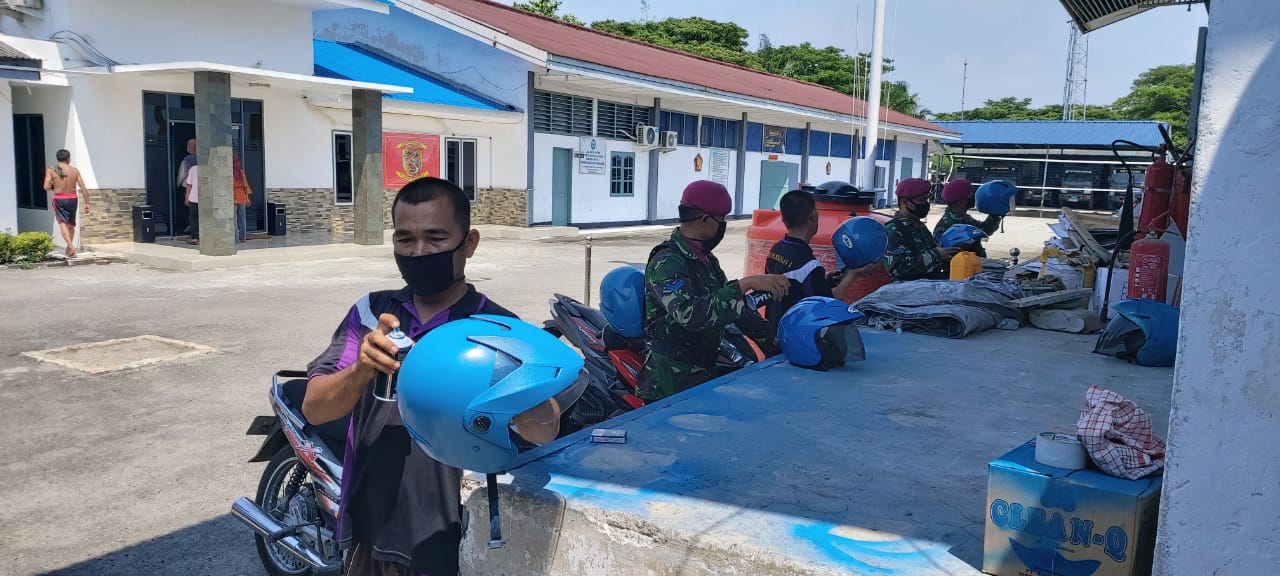 Kegiatan pengecatan helm dilaksanakan dalam rangka meningkatkan disiplin Prajurit Yonmarhanlan I dalam berlalu lintas khususnya penggunaan helm SNI dengan warna biru sesuai aturan yang berlakukan di TNI AL.